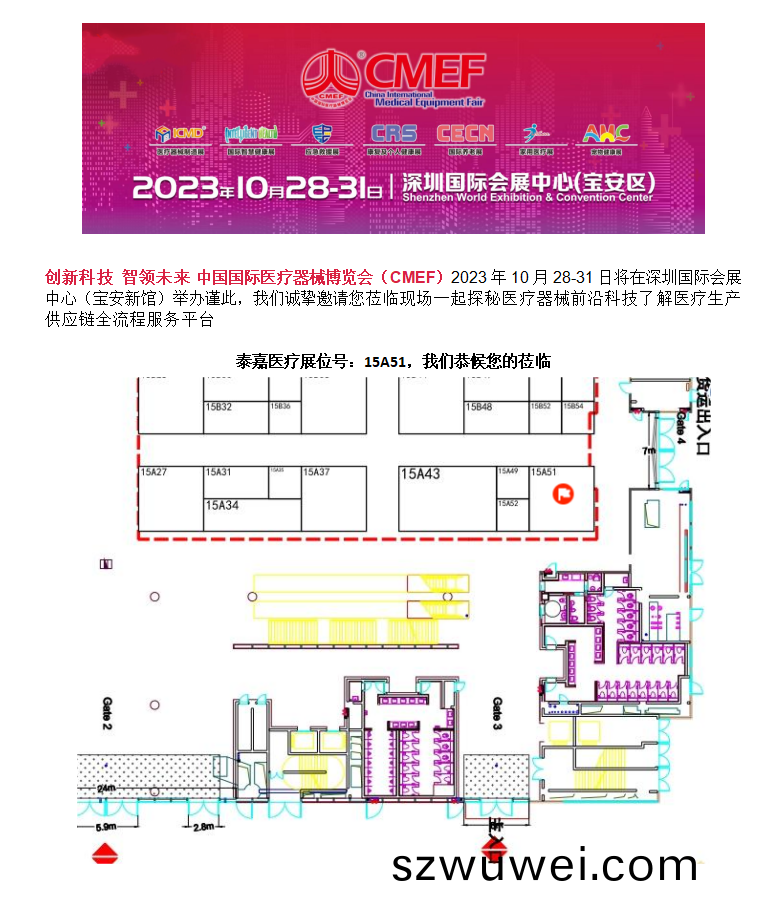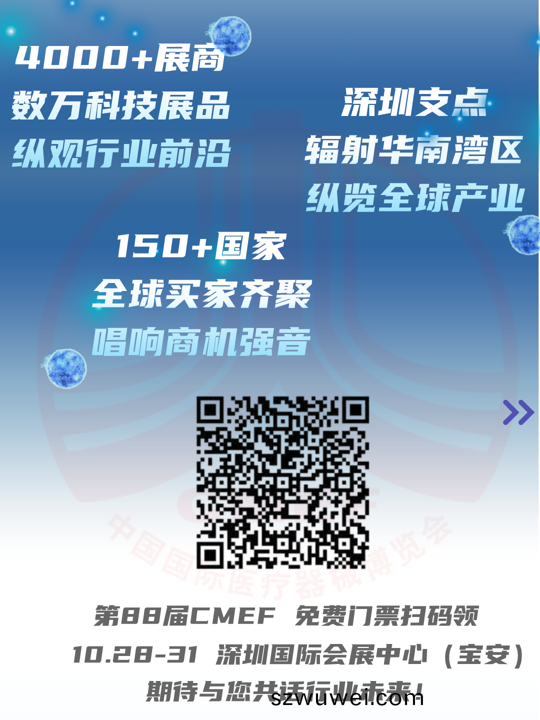創新(xin)科(ke)技(ji) 智領(ling)未來 中國國際(ji)醫(yi)療器(qi)械愽覽(lan)會(hui)(CMEF)2023年10月28-31日將在深(shen)圳國際(ji)會展(zhan)中(zhong)心(xin)(寶安(an)新館)擧(ju)辦謹此(ci), 我(wo)們(men)誠(cheng)摯邀請您蒞臨現場(chang)一起(qi)探祕醫(yi)療(liao)器械(xie)前(qian)沿(yan)科技了(le)解(jie)醫(yi)療(liao)生産(chan)供應鏈全(quan)流程服(fu)務平檯。